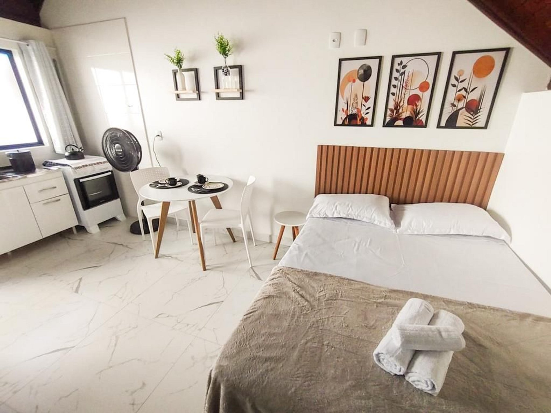 Apartamento tipo Studio com sala, cozinha e quarto conjugado, bem equipado. Localizado a menos de 700 metros da praia de Canasvieiras, uma das mais belas praias de Florianópolis. Em local de fácil acesso a todas as praias do norte da ilha.
