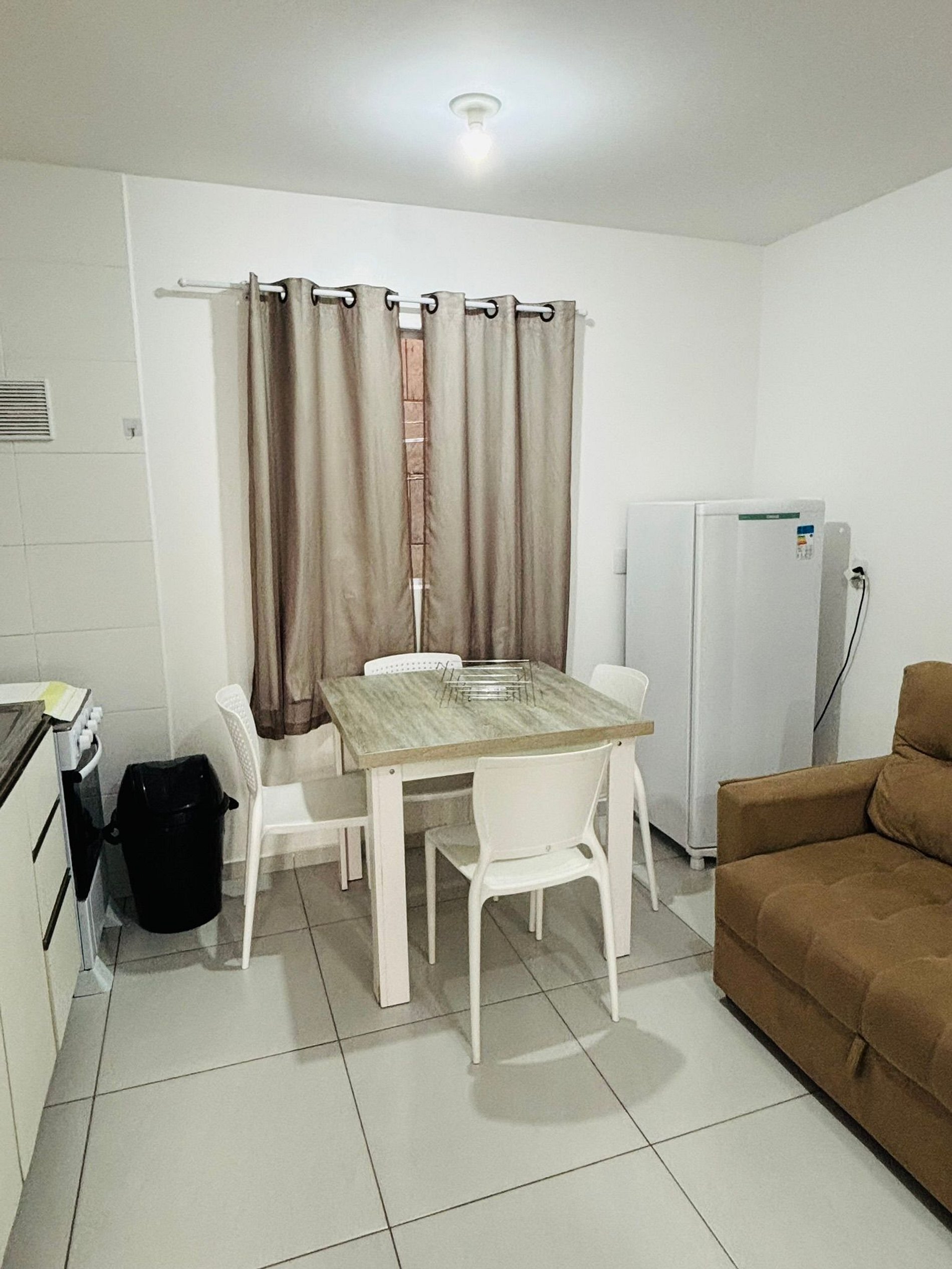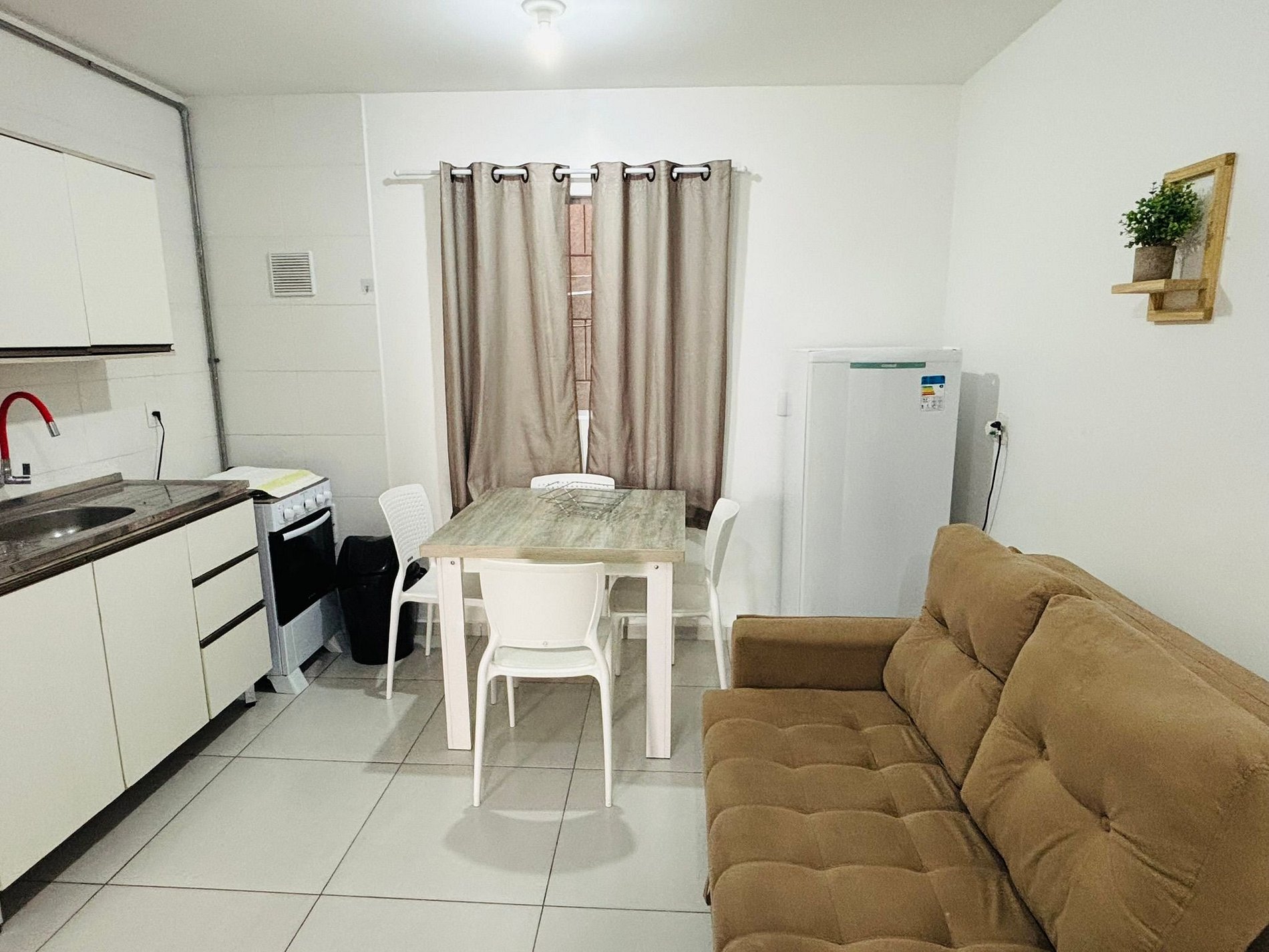 Apartamento de 1 quarto, 1 banheiro, com sala e cozinha conjugados, bem equipado, com estacionamento (1 vaga). Localizado a menos de 700 metros da praia de Canasvieiras, uma das mais belas praias de Florianópolis. Em local de fácil acesso a todas as praias do norte da ilha.