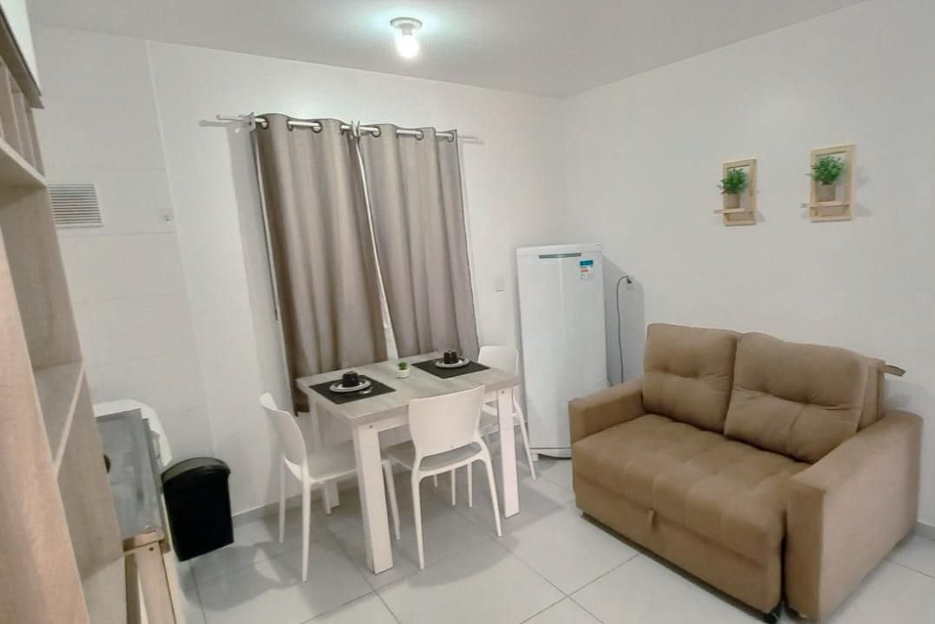 Apartamento de 1 quarto, 1 banheiro, com sala e cozinha conjugados, bem equipado, com estacionamento (1 vaga). Localizado a menos de 700 metros da praia de Canasvieiras, uma das mais belas praias de Florianópolis. Em local de fácil acesso a todas as praias do norte da ilha.